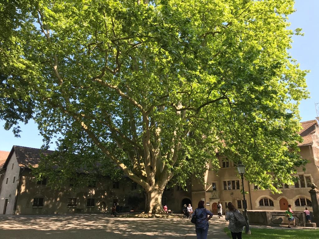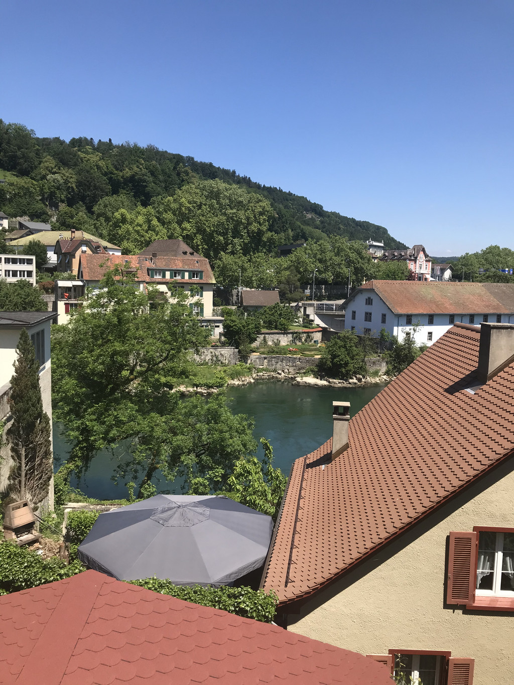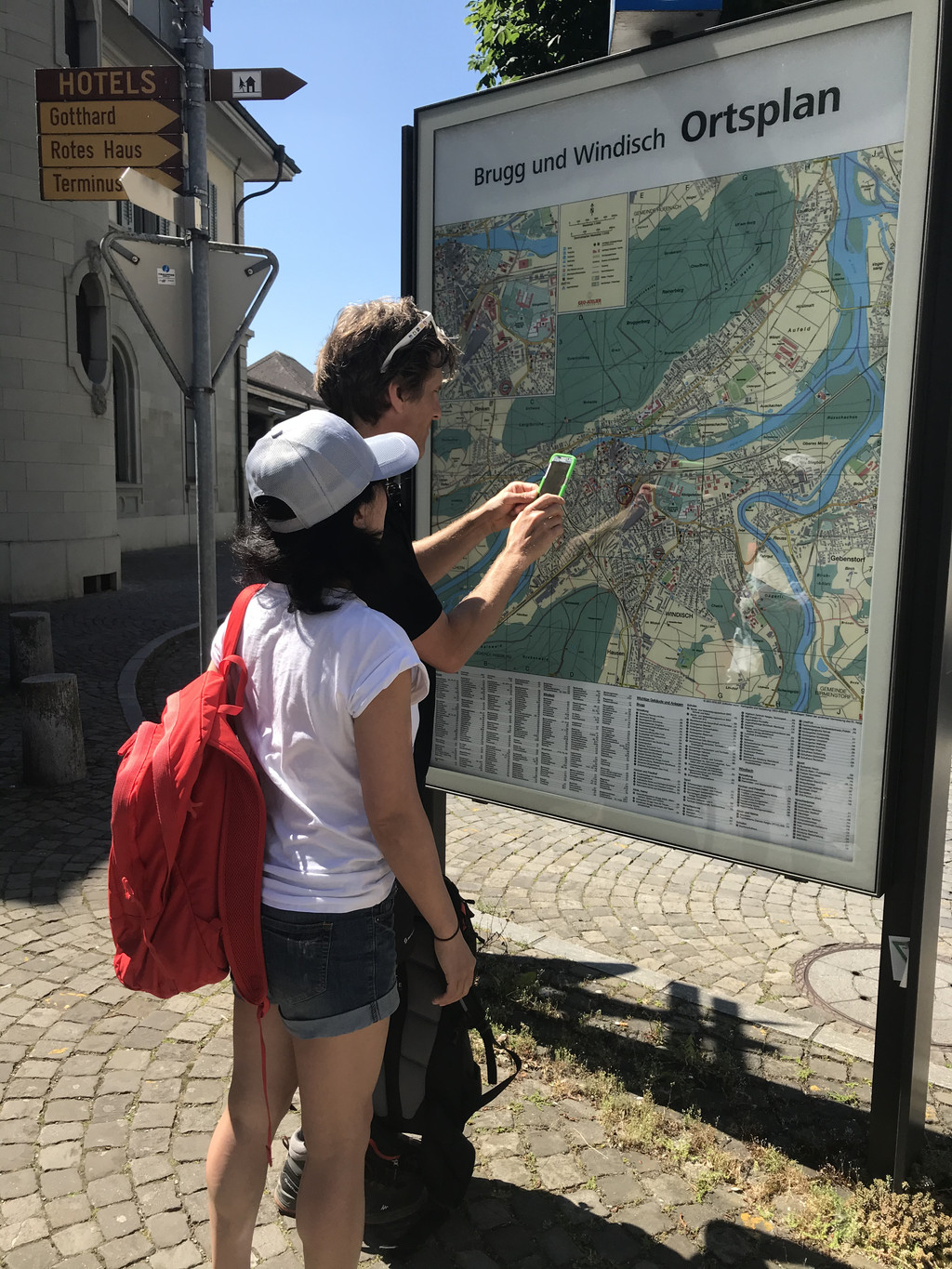 闲话少说,我们一行三人兴致盎然地上了路,直接开到Brugg的火车站后面,找了一个蓝线的路边停车位停了车。在瑞士,星期天和公共假期里在蓝线停车停车是免费的。今天是公共假期,哈哈,又占到了便宜不是。