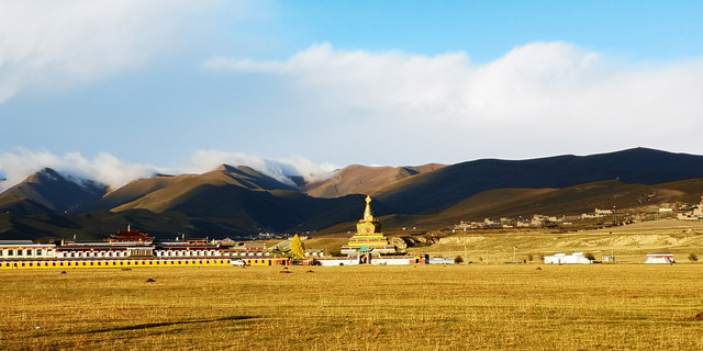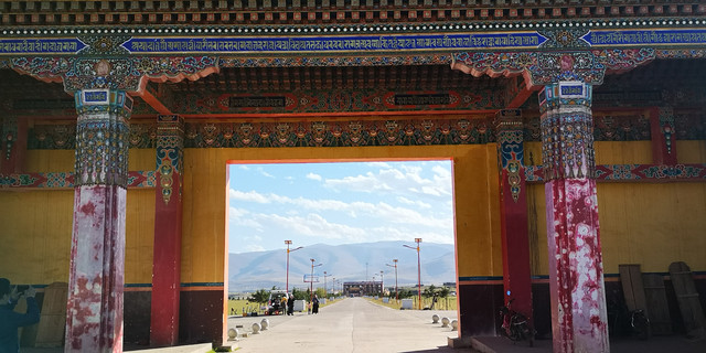 住在阿坝县的那天,时间还早,我们来到各莫寺参观。各莫寺又称慧园寺,属格鲁派寺院,是黄教六大寺之拉卜楞寺的分寺,建于1790年(乾隆56年),由拉卜楞寺大赤巴贡却德庆按照第二世嘉木祥大活佛之意创建的。各莫寺面朝大草原,背靠连绵的大山,规模宏大、建筑精美华贵。整座建筑显密兼修,有僧人600余人,佛塔、经廊、转经殿一应俱全,在当地享有盛誉。