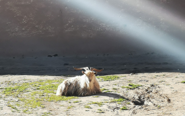 穿过一排排僧舍,感觉走了很远的路,才看见寺庙的门。门口竟然有一群羊,晒着太阳,懒散地晃悠着,看见我们走过,有些意外,直瞪瞪地瞅着我们,就像看见了外星人。几个穿着深红色僧袍的僧人围坐在一起,探讨着佛学道法。其中一人会汉语,非常友好地告诉我们可以进入参观。