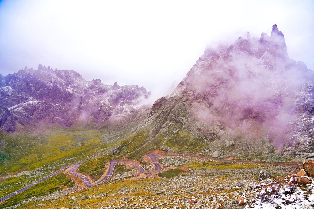 莲宝叶则是一座神奇而美丽的神山,也是一座旷世绮丽的石 头城 堡。怪石嶙峋,姿态万千,领略大自然的鬼斧神工,令人叹为观止。因初秋的风雪弥漫显得格外神秘,蜿蜒盘旋的柏油道路可直通仙境。让人望而生畏的莲宝叶则,却是旅行者探险、摄影的乐土。