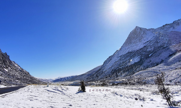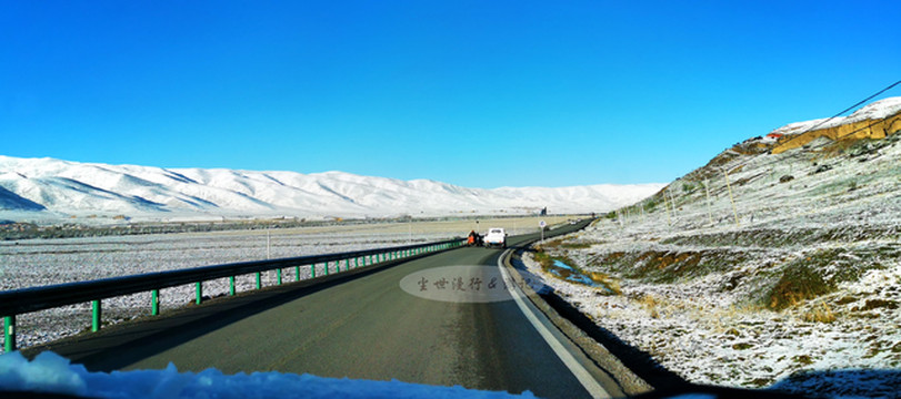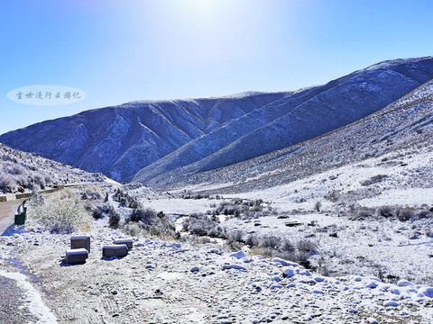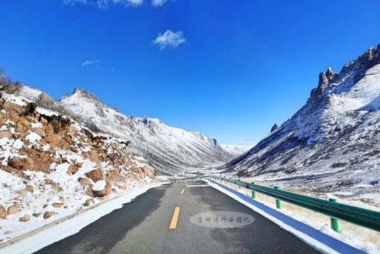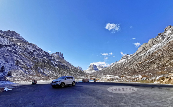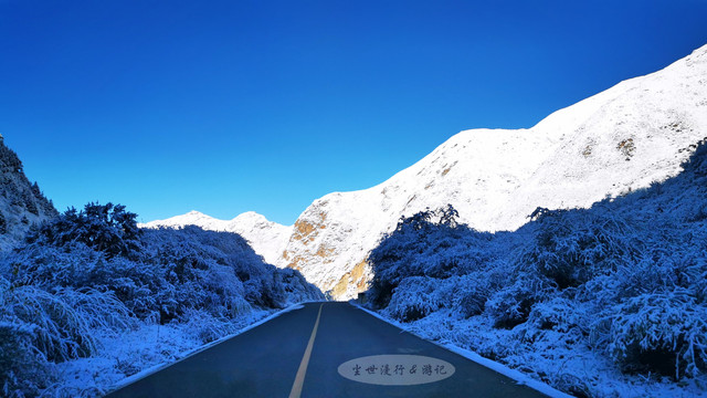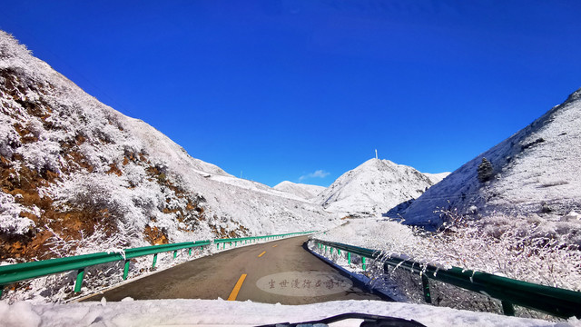 感谢上苍,今天又是个大晴天!行驶在国道上,基本上只看到两种颜色:蓝色是天,白色是地(山)。