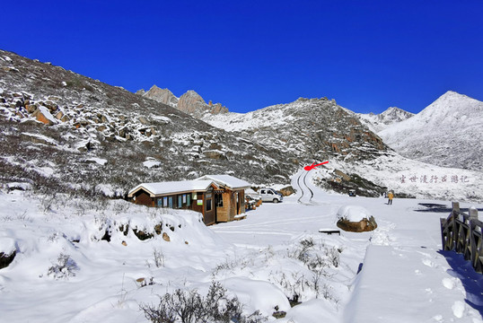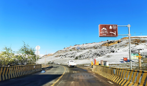 进入景区,一片白雪皑皑,还好公路上没有积雪。