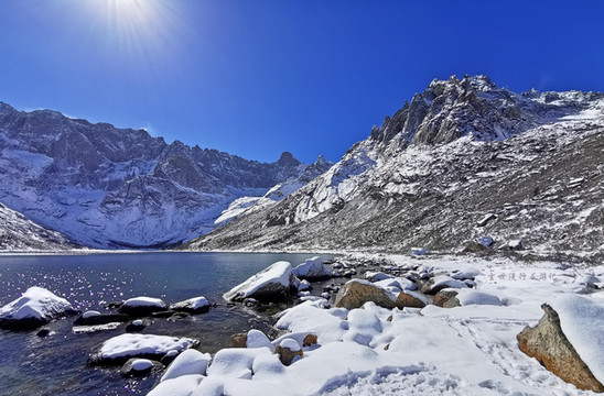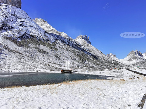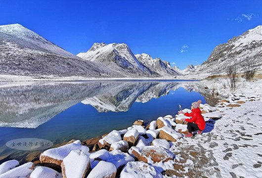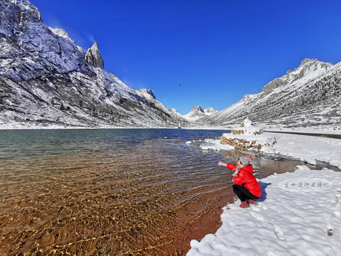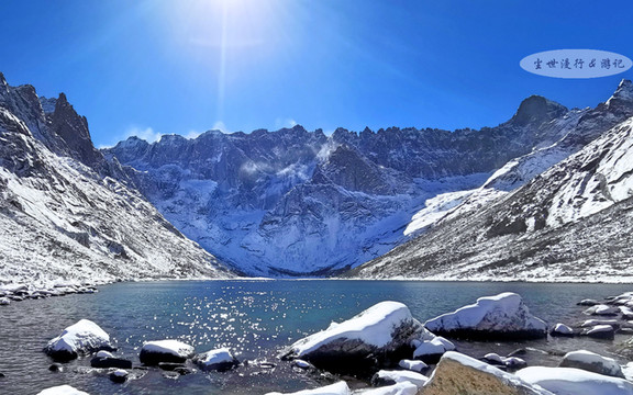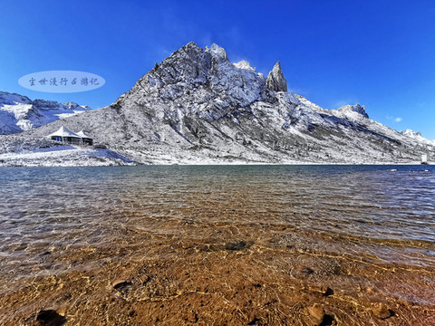 阳光下的柏香湖纯净得恍如仙境——湛蓝的天空下,棱角分明的雪山毫无遮拦地将身影倒映在清澈的柏香湖中,空灵幽静的气氛直让人不忍离去。