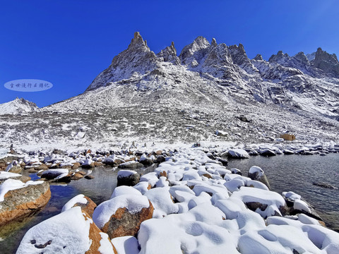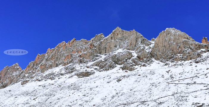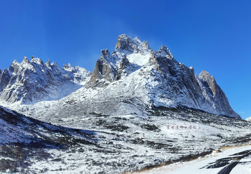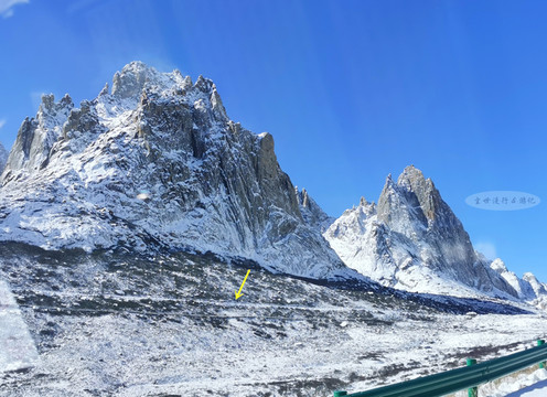 黑色质感极强的锋锐石头山,给人以极强的压迫感;成片的独特山峰,给人以异域星球的感觉;黑色的山体覆盖着白雪,更显奇特圣洁。