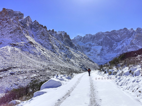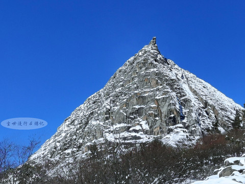 鬼斧神工般陡峭的山岩身披白雪,更显冷峻伟岸,充满阳刚之气。