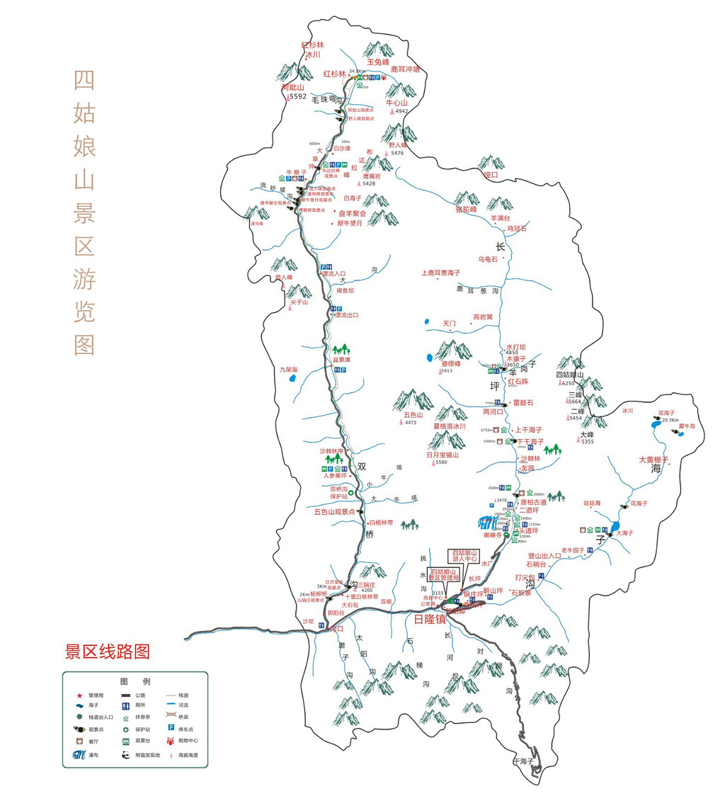 四姑娘山高山区常年积雪,山麓沟壑纵横,湖泊海子点缀其间,山与水刚柔相济互得益彰。因不善攀登又酷爱高反,所以我们选择把资源开发较为充分、基础设施相对完善且风光最为秀美的双桥沟作为游览目的地。