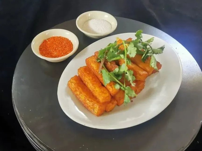 山泉水磨成的豆腐细腻嫩滑,豆腐色泽乳黄鲜嫩,口感细软回甘,豆香醇厚,唇齿留香。