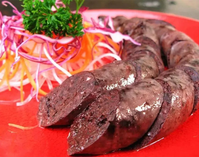 血肠不同于普通香肠,不仅有肉类,还灌入了动物血液。具有不碎、不渣、不脱皮的特点,营养丰富。