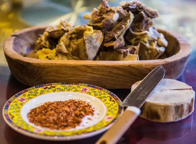 手抓肉肉质密实鲜美、浓厚香醇,适口性好,蘸上花椒辣椒面吃,更是回味无穷。