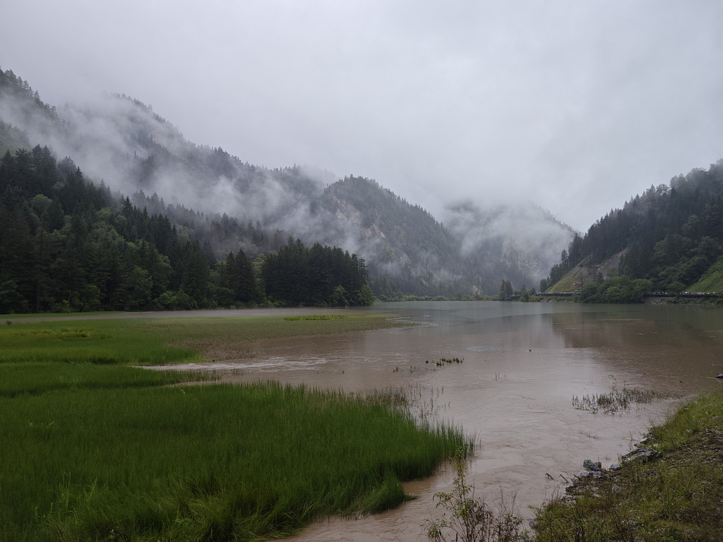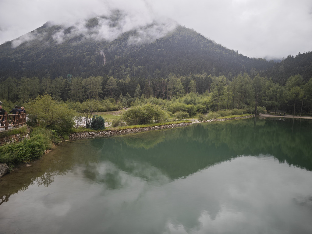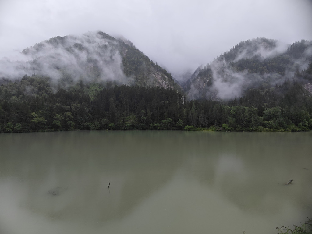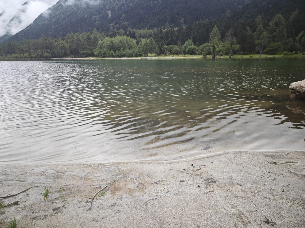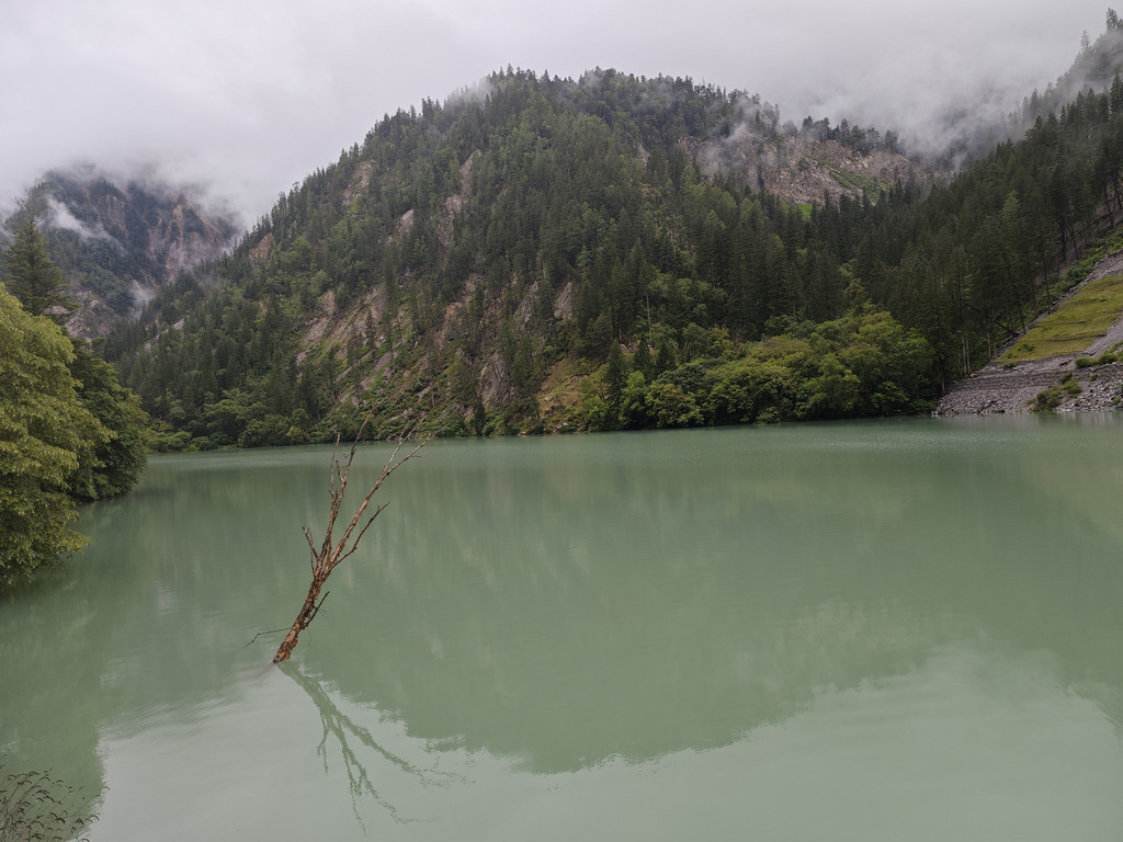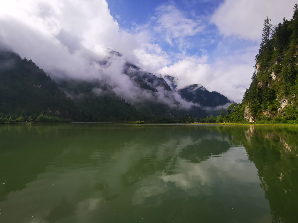 路上看到叠溪海子,海子周围青山环抱,湖岸翠草丛生,湖水碧波荡漾,景色优美迷人。因为最近四川下雨原因水比较浑浊,影响了景色。