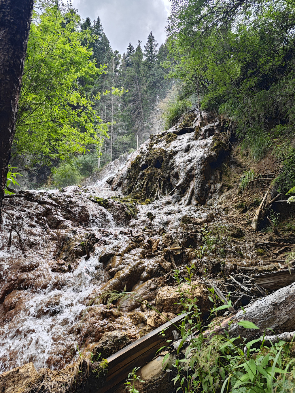 因为时间原因,我们选择了扎嘎沟,扎嘎瀑布是其主要景点,享有“中华第一钙化叠瀑”美誉,特色为流水和钙化双重瀑布。