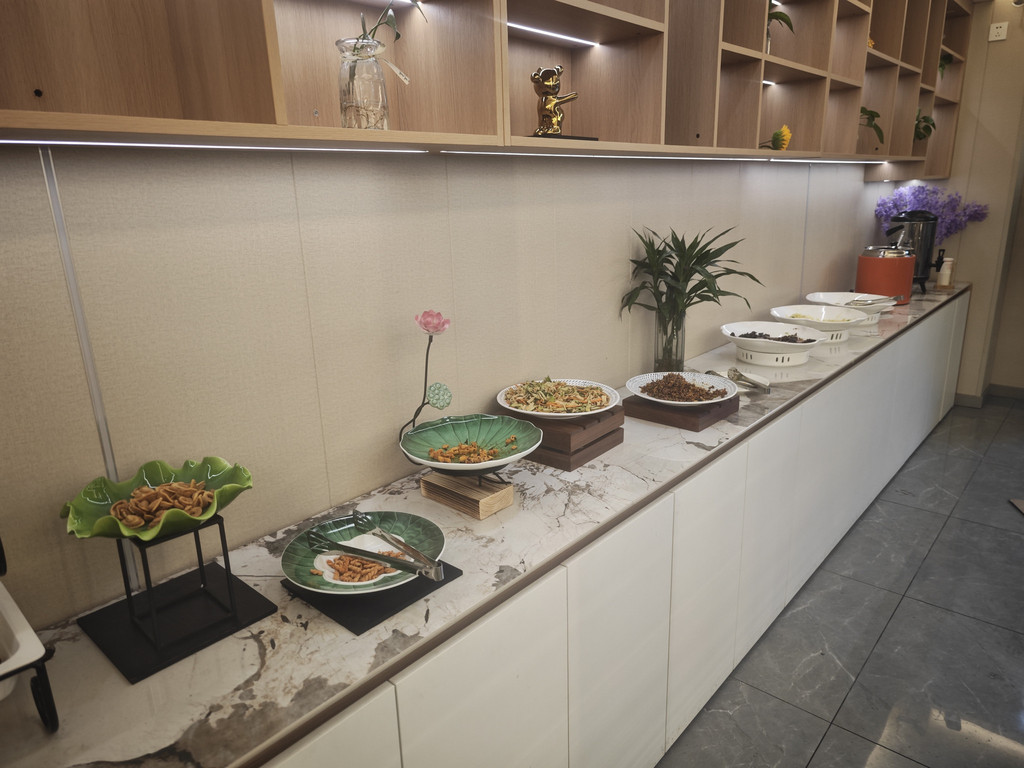 我们是7点退房,吃早餐。早餐种类不少,还有些成都小吃。