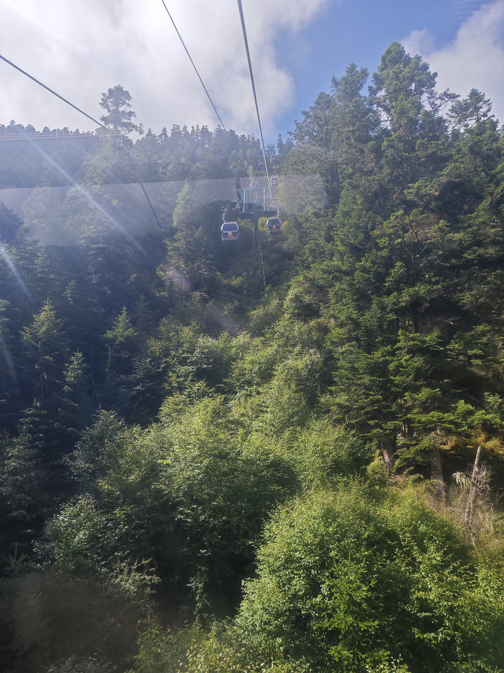 黄龙索道比较贵,80元一张票,可以选择上下行都徒步爬山或者单程步行单程索道,不建议双程都索道,这样回错过很多美景。结合自身,选择了大众多数选择,上山时索道,避免了高原爬山时不舒适的反应,下山时步行可以好好欣赏景色,这样下索道后不用步行几公里山路。