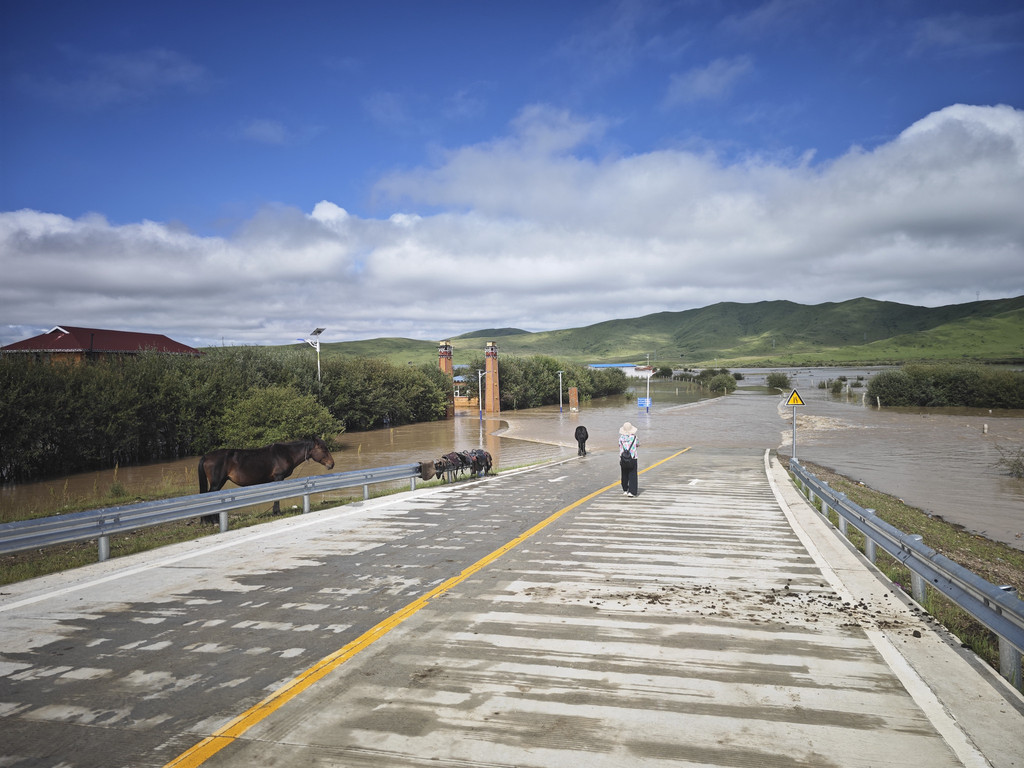 过了桥发现,白河上游发大水,把整个寨子都淹了,洪水已经漫过了马路。