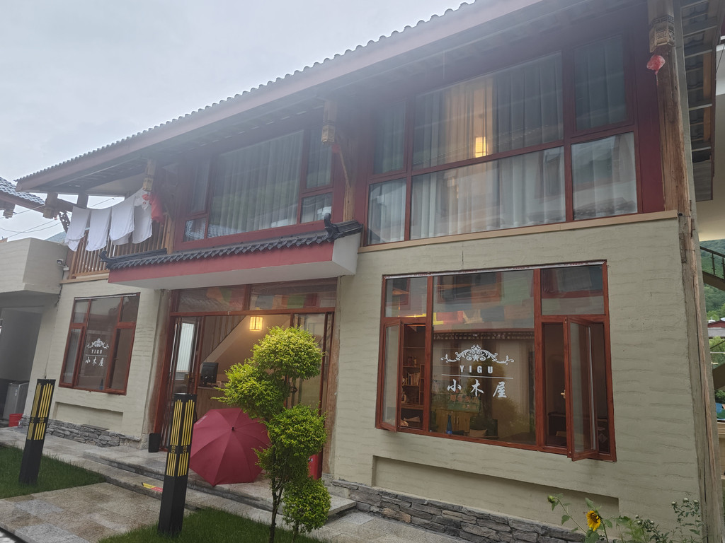 今天入住的民宿:九寨沟熠谷别院民宿酒店,漳扎镇漳扎村三组179号。我大概提前3个多月就预订了,从住过的游客来看评价都挺不错的,而且老板很热情,最早的时候帮忙研究行程安排,后来一直有告知路况、天气以及注意事项,即使从黄龙出发后也关心何时到达。民宿从沟口九寨有礼,漳扎宝盒的文创空间路口转进去就可以了。民宿老板也是藏族,这个民宿的外观也偏藏式,晚餐也以牦牛火锅为主。