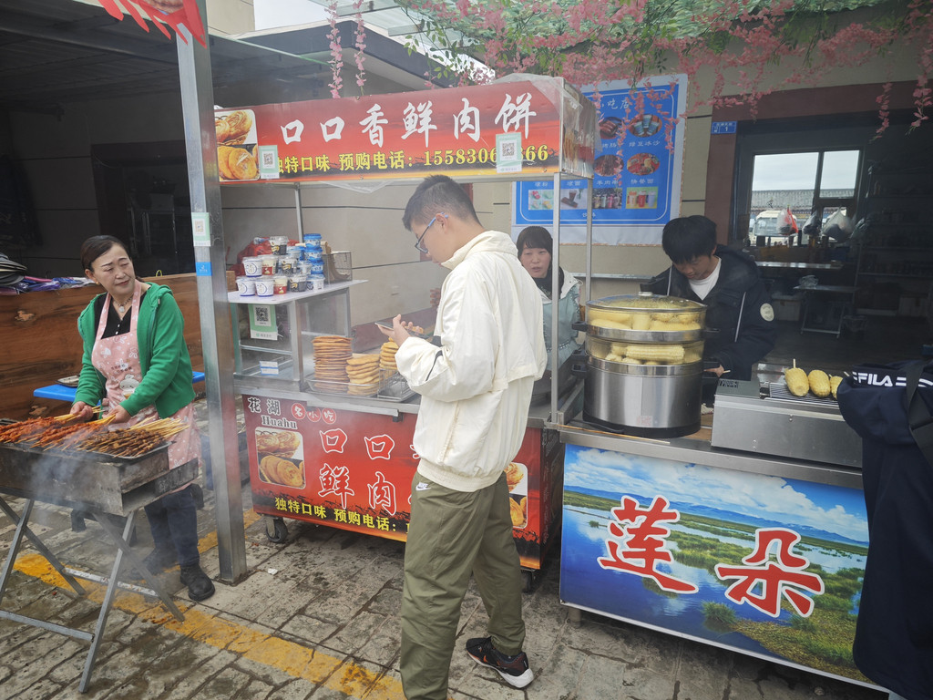 起床后退房,民宿没有早餐,附近找了一家早餐店。肥肠面和包子很好吃,锅盔酥脆,走的时候又打包了一个。