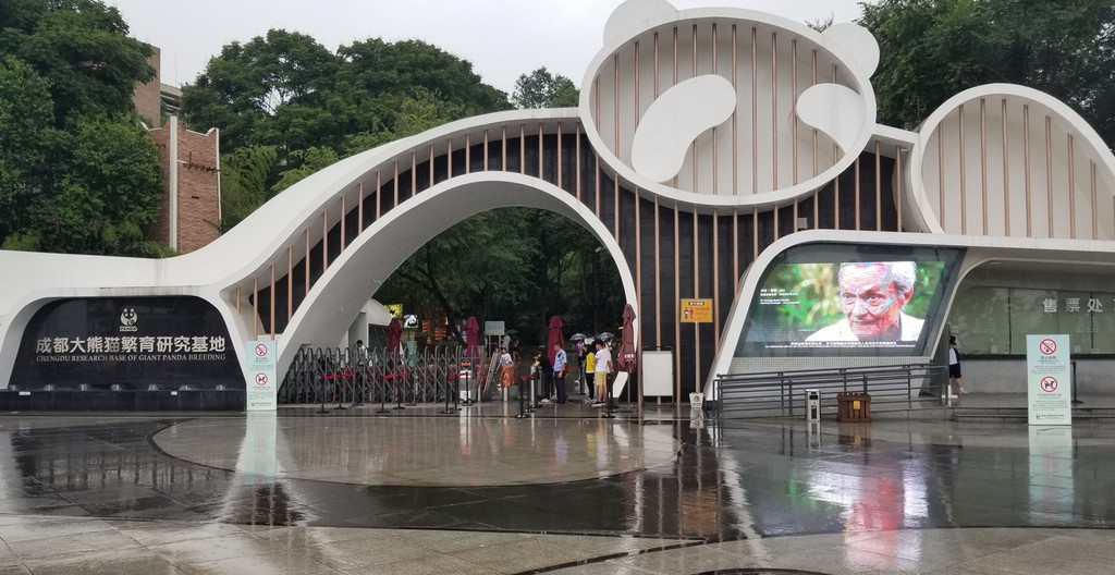 4个人酒店吃完早餐后,打车去熊猫基地。从酒店到成都大熊猫繁育研究基地南大门,大约15公里,30分钟到达。