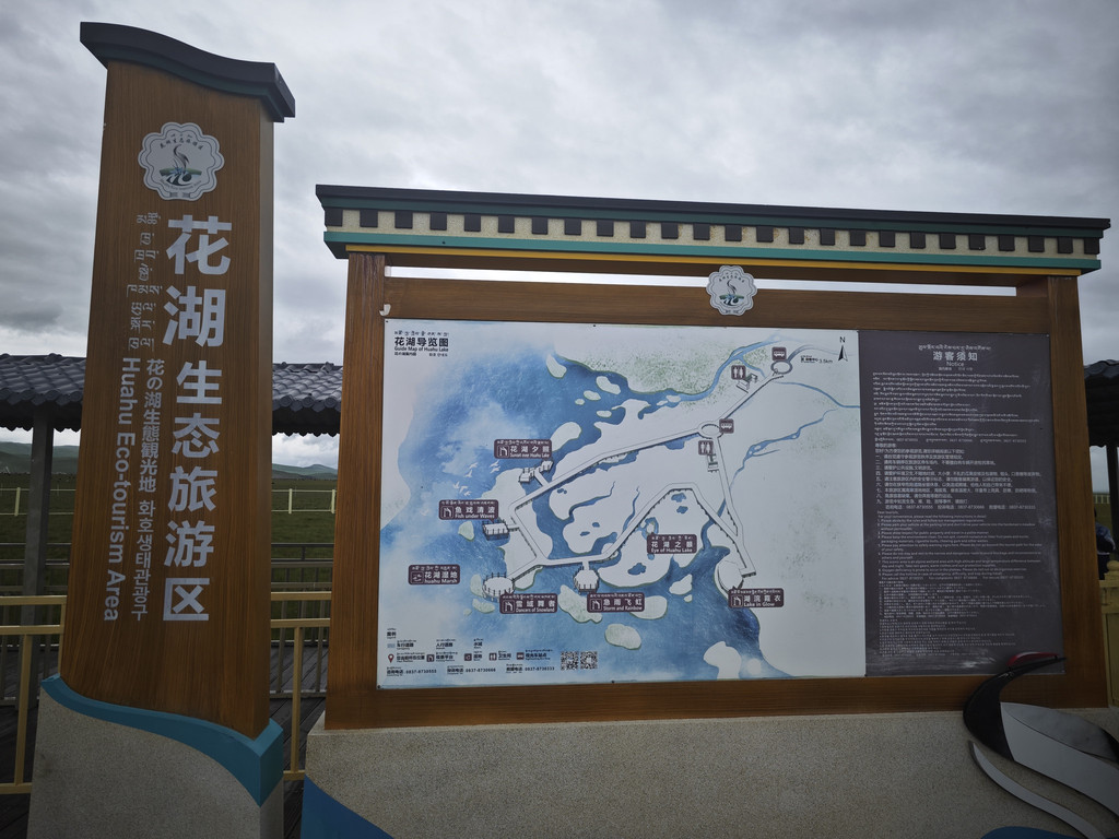 继续电瓶车到磐羊湖,要问一下电瓶车的方向。这里可以回到上海子,也可以去磐羊湖。