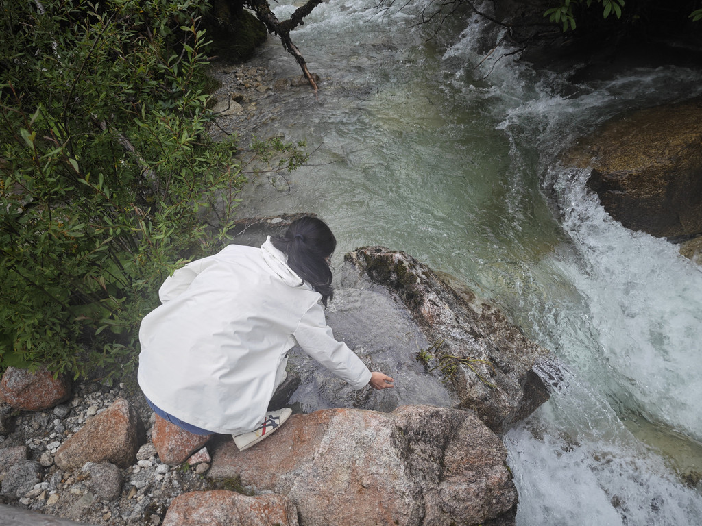 雪山上流下来的融水,品质等同于瓶装水,可以直接饮用的。我们罐装了一瓶,好像冰镇矿泉水,确实有点甘甜,不知道是不是心理作用。