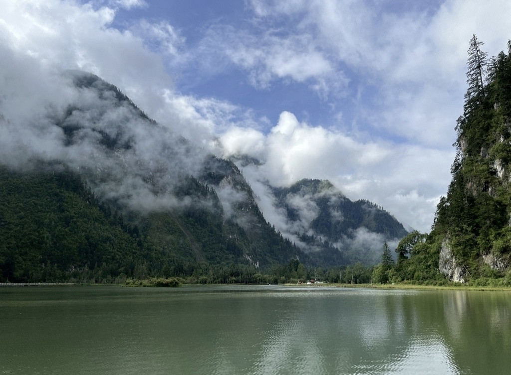 龙王海是一个位于毕棚沟景区内的高山湖泊,以其清澈透明的湖水和壮丽的自然风光而闻名。一下车,就看到静谧的湖水倒映着远处斑驳的山峰,蓝天白云点缀着如诗的画卷。