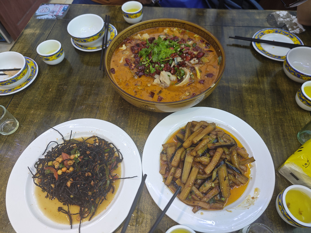 从景区出来之后,午饭是在安曲镇,点了鱼香肉丝、麻婆豆腐和回锅肉,味道只能说一般般。不过碰到了一个从上海自驾来的大叔,两个人聊了一会,羡慕过着自由自在的退休生活。