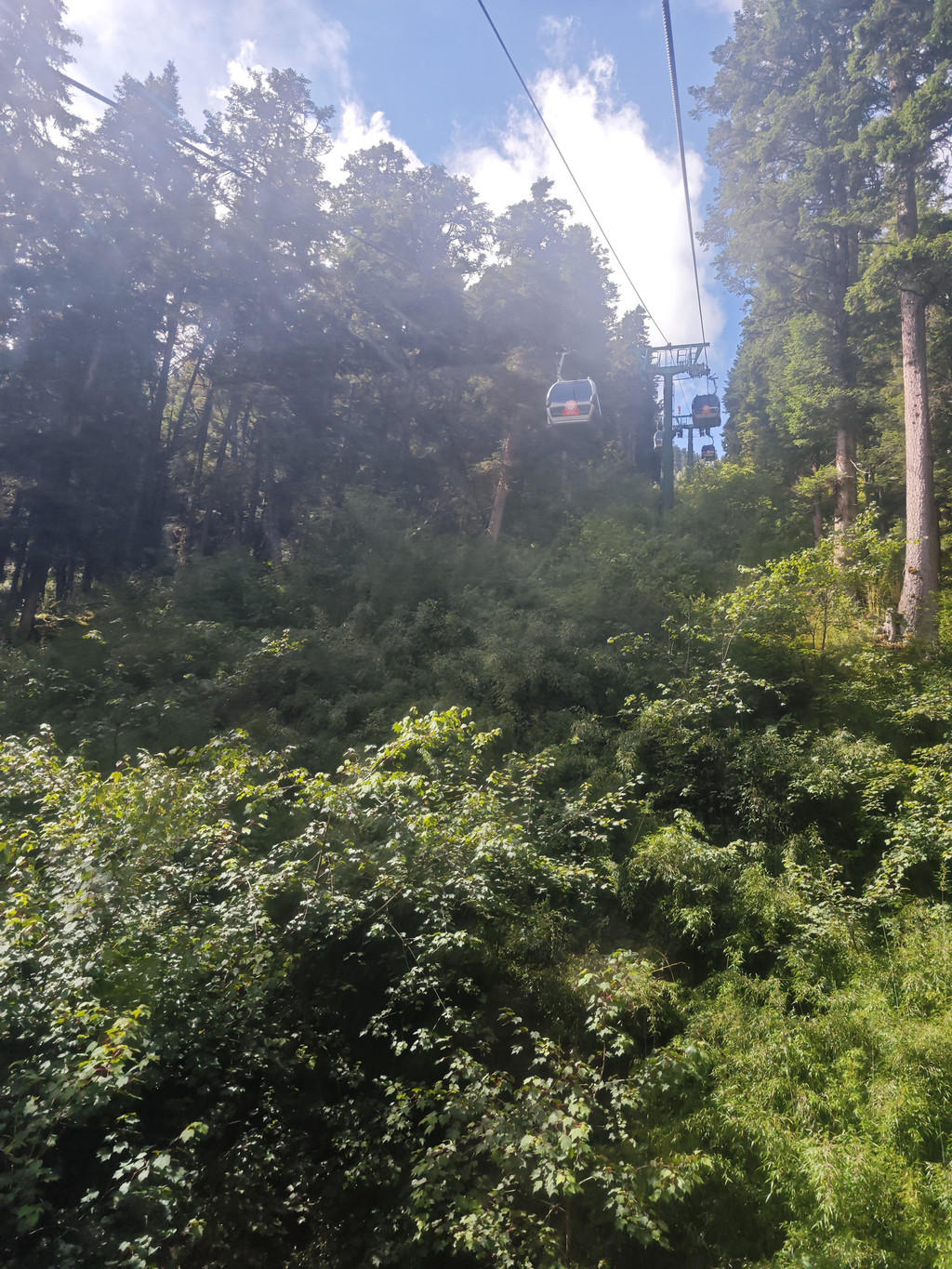 我们从松潘县城过去,到的时候大概9点多,索道已经要排半个多小时。索道大约行驶4分钟后就到了山顶,下了索道步行不远,就是观光车出发的地方。如果下了索道直接走路到五彩池要半个多小时,如果坐观光车,只需下车后再走800米就到了。因为海拔高,还是建议把行程安排得轻松一点。观光车票每天5000张,不想旅程太累,或者同行有老人小孩,建议提前购买。