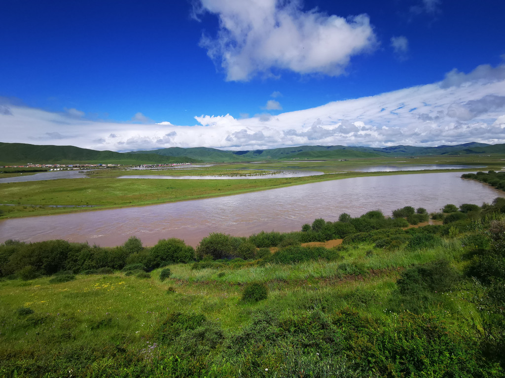 月亮湾是黄河上游重要水源——白河(嘎曲河)的一段,因草原湿地的影响,白河在红原境内呈弯弯流淌的流向,美丽宽广的草原上,清澈的河水在草原上划出一道道舒缓优美的弧线。