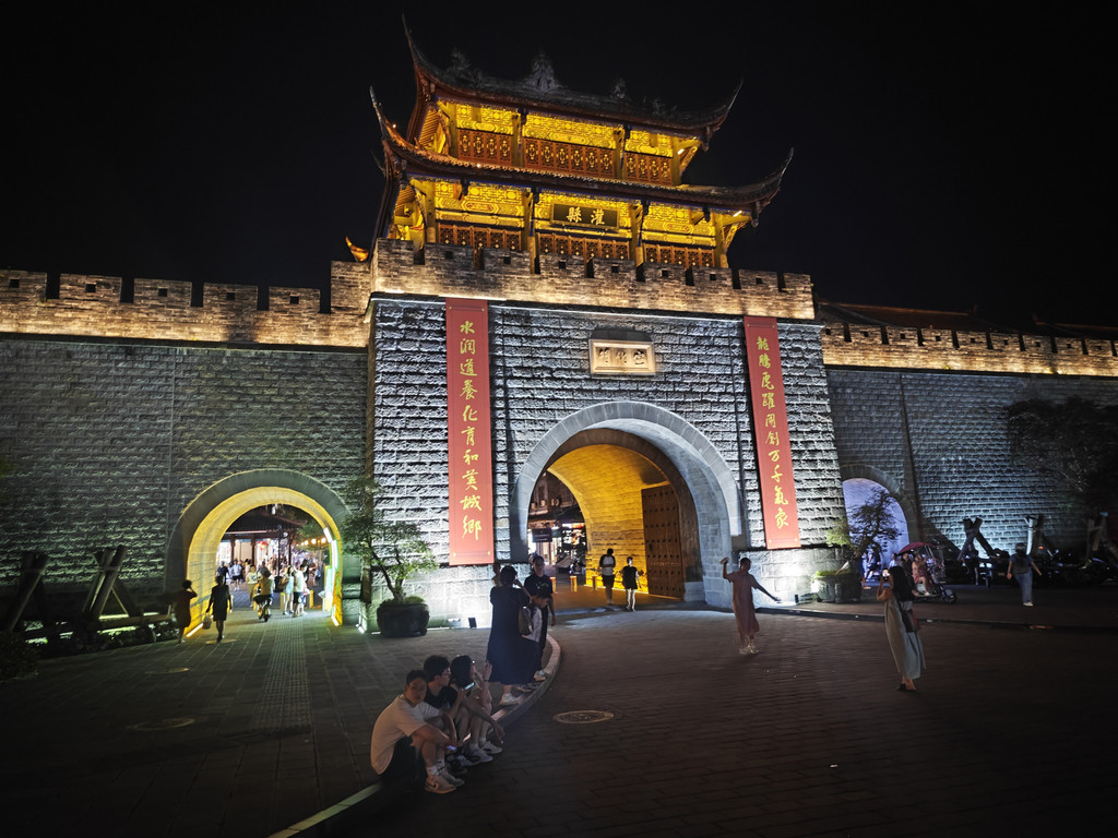 吃完晚饭,我们一起步行到松潘古城逛逛,沿着岷江有步道,最近暴雨岷江水流很湍急。