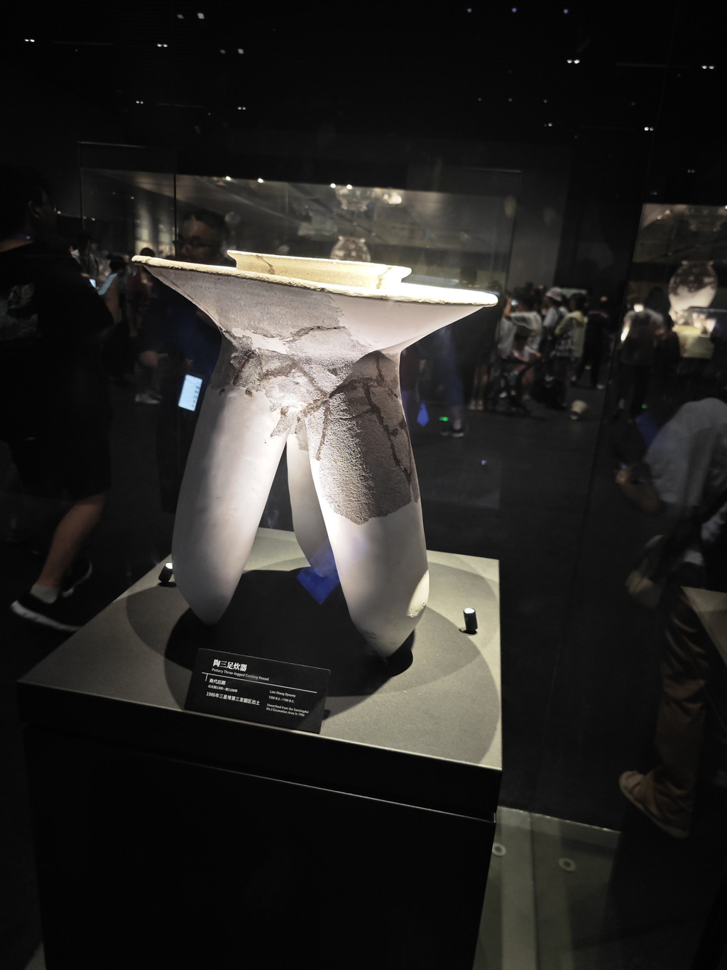 1楼2号馆【巍然王都】:下设七个单元。从文明探源的角度,对三星堆古国的自然环境、社会面貌、都城布局、手工业技术、权力结构等进行全方位展示和解读。著名的展品“四川火锅——陶三足炊器”、“黄金面具”等都在这里。