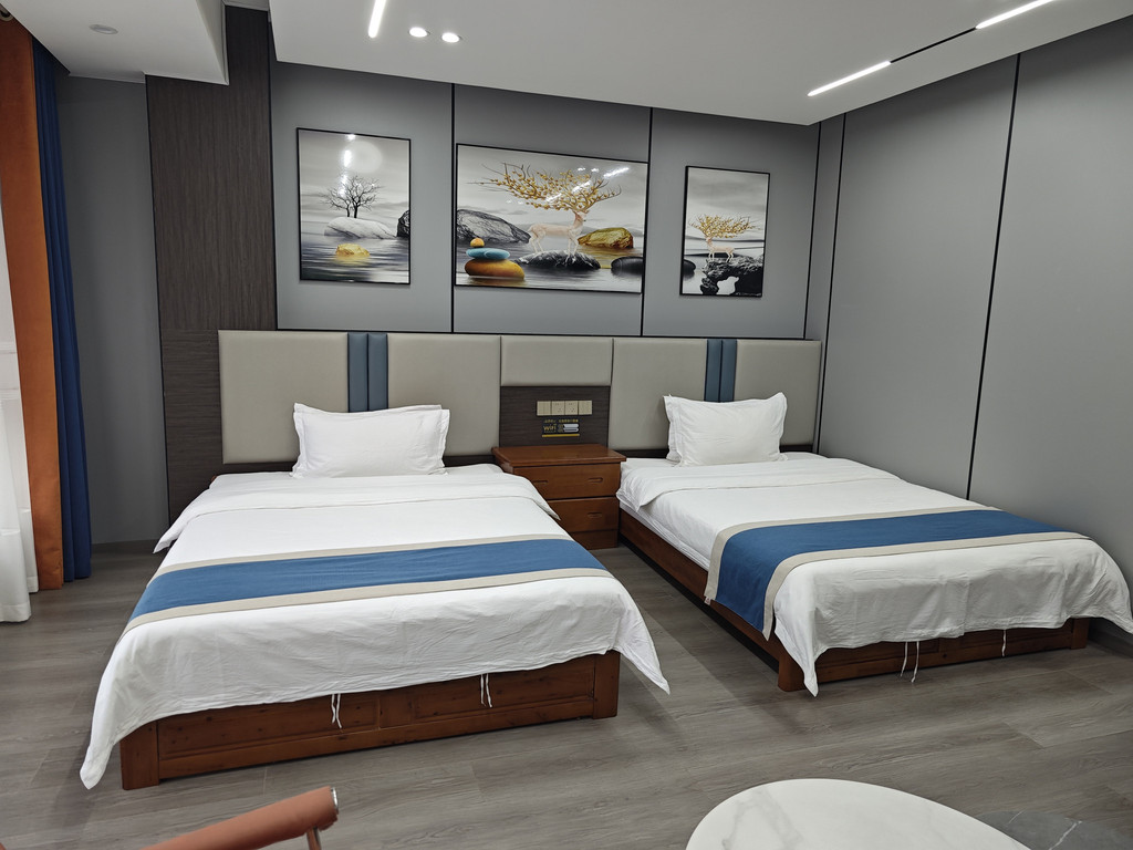 今天入住酒店:颐家天品酒店(绵竹店),在剑南街道大南路南轩星城,2间大床1间双床,带早餐。