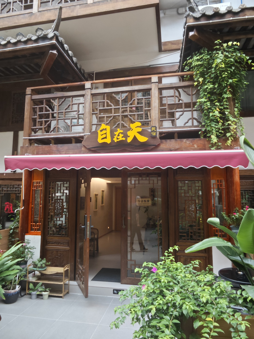 今天的目的地是都江堰的民宿,自在天。在都江堰水街上的仿古街。民宿离灌县古城、离堆公园都不是很远,旁边也是美食一条街,吃饭也比较方便。