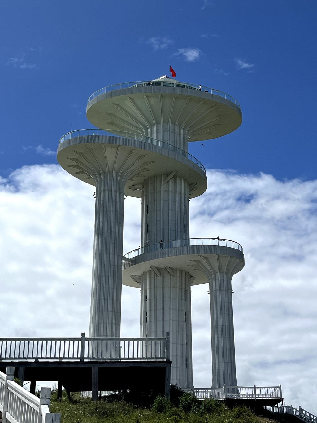 月亮湾有个观光塔。位于景区中心位置,高达50米,三个观景台分别设有22米、37米、49米的高度,可以电梯直达。