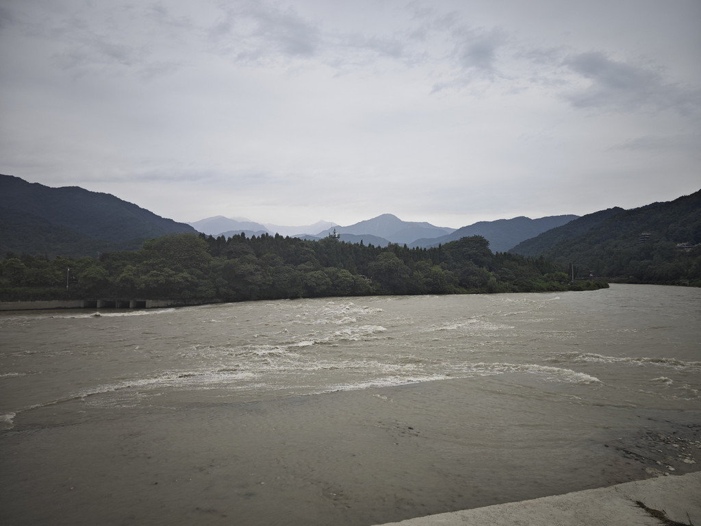 吃完之后,我们就在附近逛逛。灌县古城比较无聊,穿城而过的岷江,水流湍急。