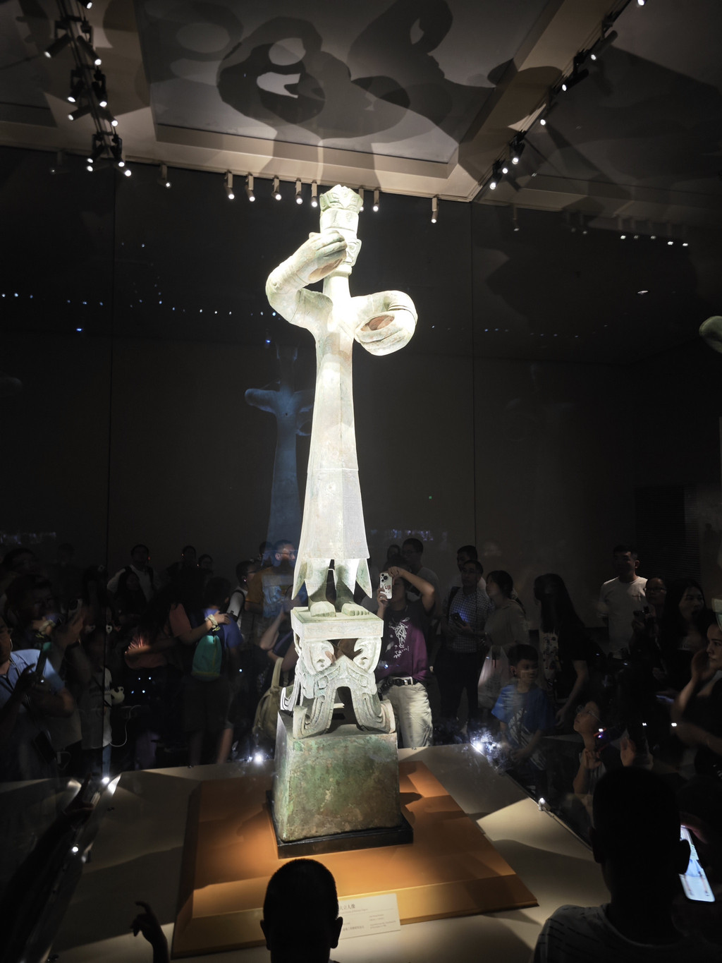 1楼1号馆【世纪逐梦】:1927年至今整个三星堆百年的发掘历史,了解如何发现、唤醒、复原文物的过程。有著名的青铜大立人和青铜面具、黄金面具、金杖等。
