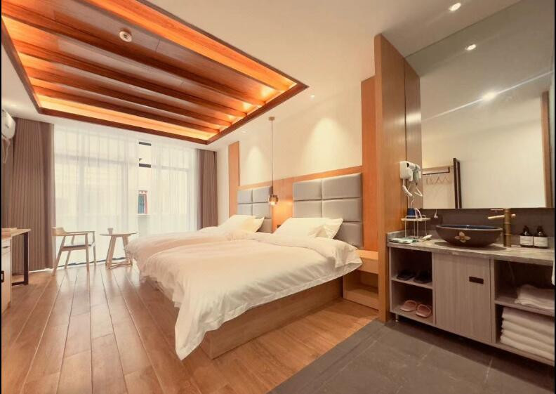 我们定了3间不同的房型,结果都连在一起。可能和我订的比较早有关,老板是成都蓉城的球迷,推荐了不少都江堰的游玩攻略。