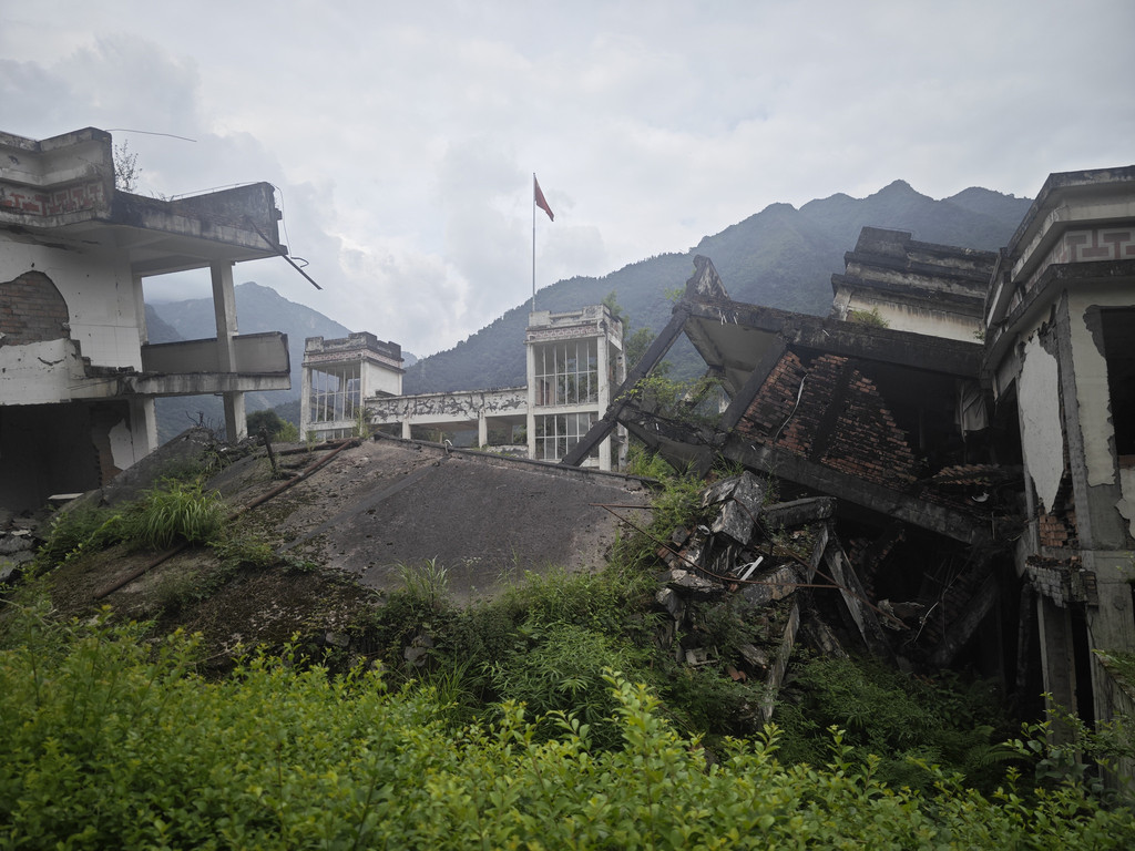 汶川漩口中学遗址。永恒的瞬间定格在2008年5月12日下午2点28分。