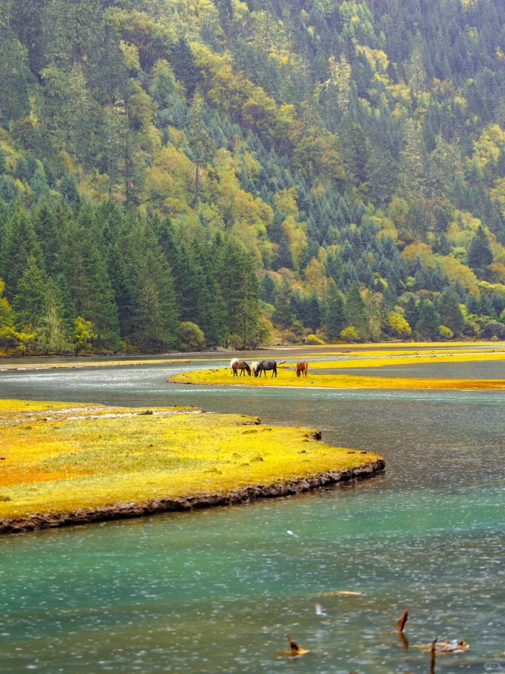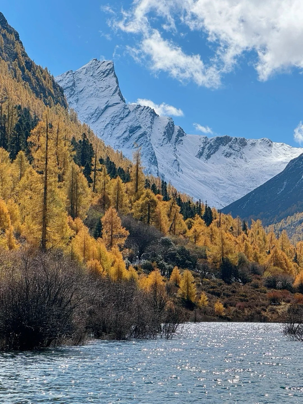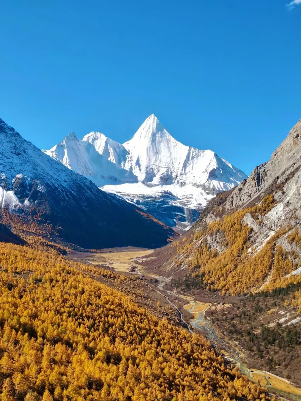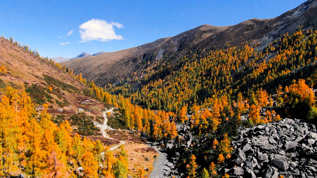 观赏时间:10月中旬-11月初金黄色彩林,草甸、森林、雪山、小动物、河谷