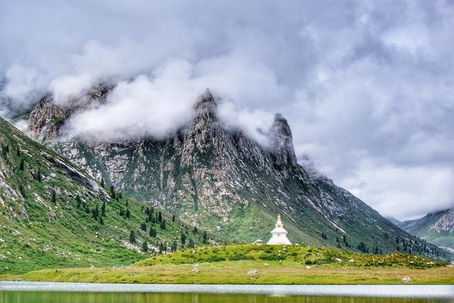扎尕尔措是位于莲宝叶则深处的一个清澈圣洁的湖泊,也是莲宝叶则地区海拔最高的一个湖泊(海拔:4200米)。湖后神山更是如刀劈斧削的锋利刀刃般的绝壁“城墙”,高达1000多米。雨季时,巨大的岩壁则笼罩在云雾之中,注视着前来圣湖朝圣的人们。