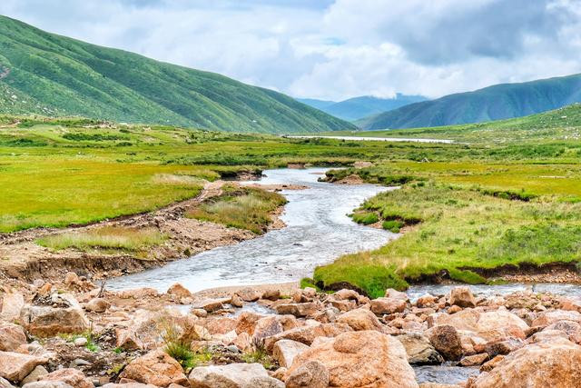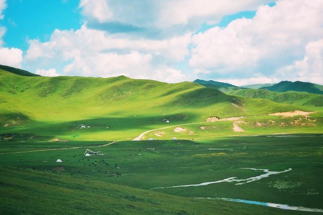 辽阔无限的大草原,绿草茵茵,花海草毯十分美丽,是川西北藏区的优良牧场。