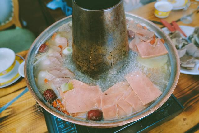藏式土火锅:就是把牦牛肉、蔬菜、菌类放进铜锅内一起煮,味道鲜香浓郁,汤超级好喝。