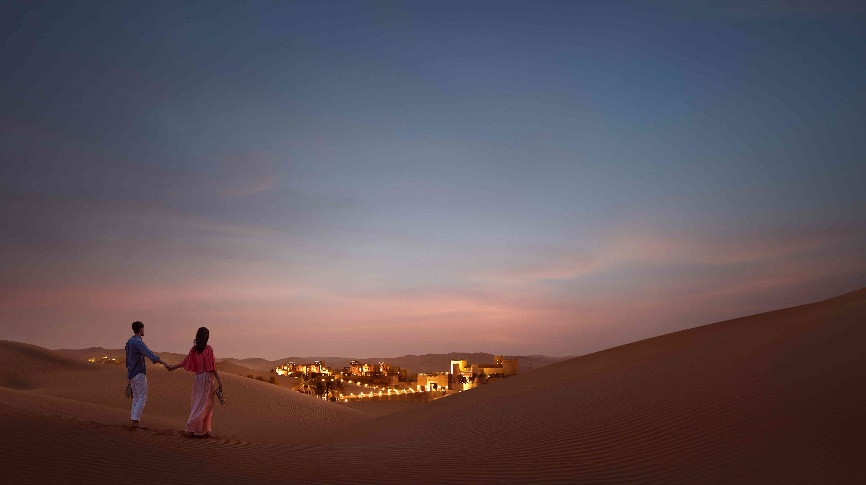电影《星球大战》中,汉·索罗将军和莱娅公主在塔图因沙漠的落日下私定终身,如果你也想在阿布扎比复刻这场浪漫,盖斯尔奥萨拉安纳塔拉沙漠度假酒店(Anantara Qasr Al Sarab Desert Resort)一定是不二之选。在这里,你们将穿过城市的喧嚣,在大漠落日的绝美景致中享用晚餐,看晚霞为利瓦沙漠镀上一层梦幻的红晕;或是在射箭、鹰猎等当地传统活动中,体验一把“神雕侠侣”畅快;抑或是骑上骆驼,和爱人一起向着地平线尽头的血色夕阳迈进。不用羡艳荧幕上的浪漫桥段,与爱人并肩在无垠沙漠中感受微风、流云和星河,足以抵过任何誓言。