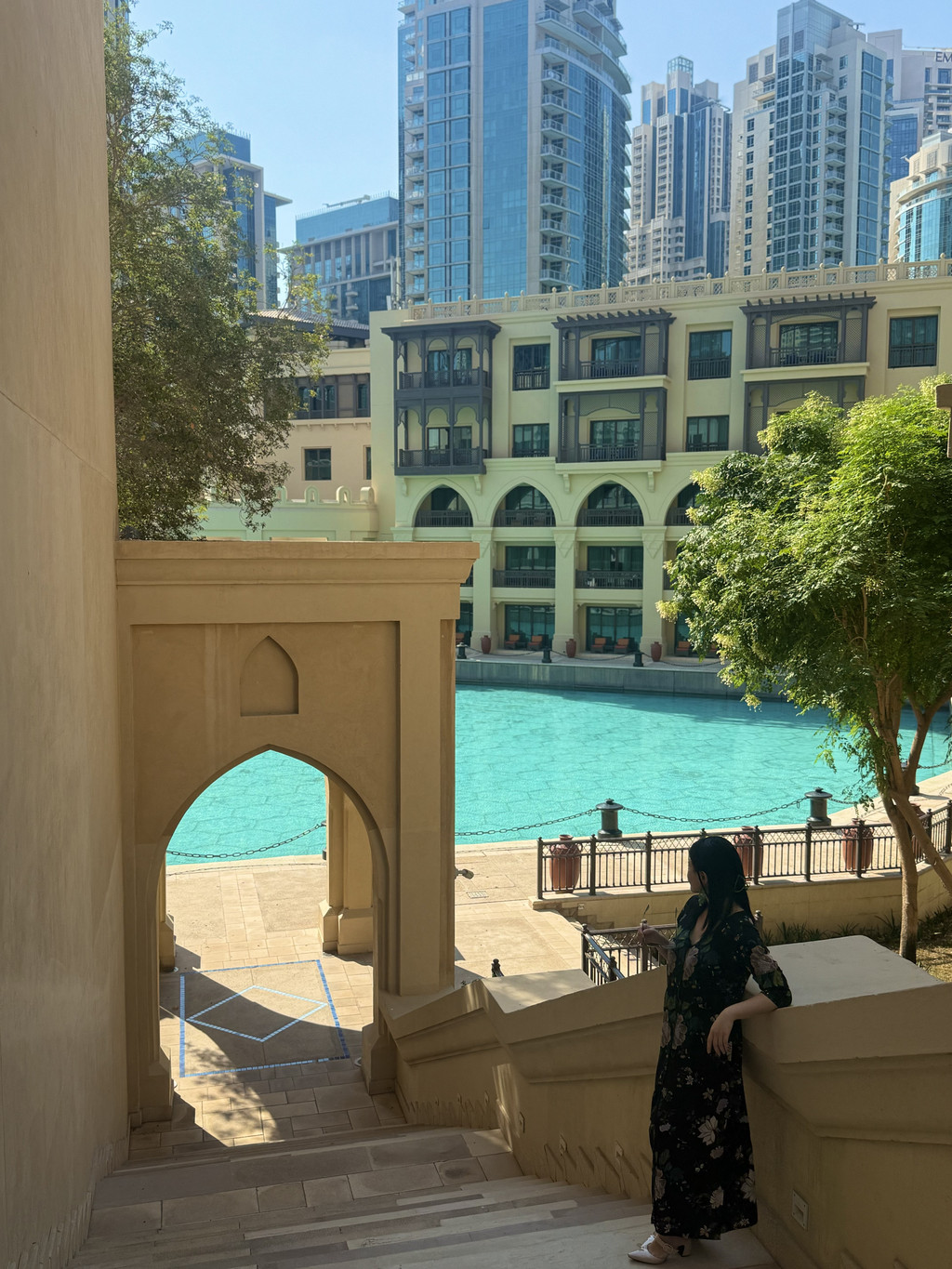 第一站是迪拜市中心Dubai Mall片区,我们是打车到中心皇宫酒店作为起点的。这家酒店真的是完全长在了我的审美点上:酋长皇宫式的外墙,碧蓝的池水,以及得天独厚的哈利法塔背景,随便一拍就是大片。酒店门口停着一辆超级酷炫的芭比粉的十米加长GMC,Uber司机向我们介绍,它其实是辆taxi,每小时的租金大概是1500RMB,嗯,谢邀~ 传说中的Dubai Mall有五十个足球场那么大,不管是不是真的,反正真的就是能走断腿就是了,基本上在国际上能叫得出名字的品牌这里都能找到,只要有钱,你就能买到想要的东西,甚至还能在室内体验水族馆的潜水。哈利法塔的楼下有非常多的景观酒吧,能够近距离地观赏到塔景还有晚上喷泉,下午茶人均消费在150RMB,chill一下还是蛮舒服的,预算充足的话当然也可以试试商场里的阿玛尼咖啡,我们就不充这个大头了。偶然发现,这里的中国人真的很少,商场里大多数都是欧美或者是印度人,估计旅行团都不到这边来,还有就是消费确实太高了(Mall里的China Town让人倍感亲切,但一杯奶茶52RMB,瞬间没爱了),没必要。
