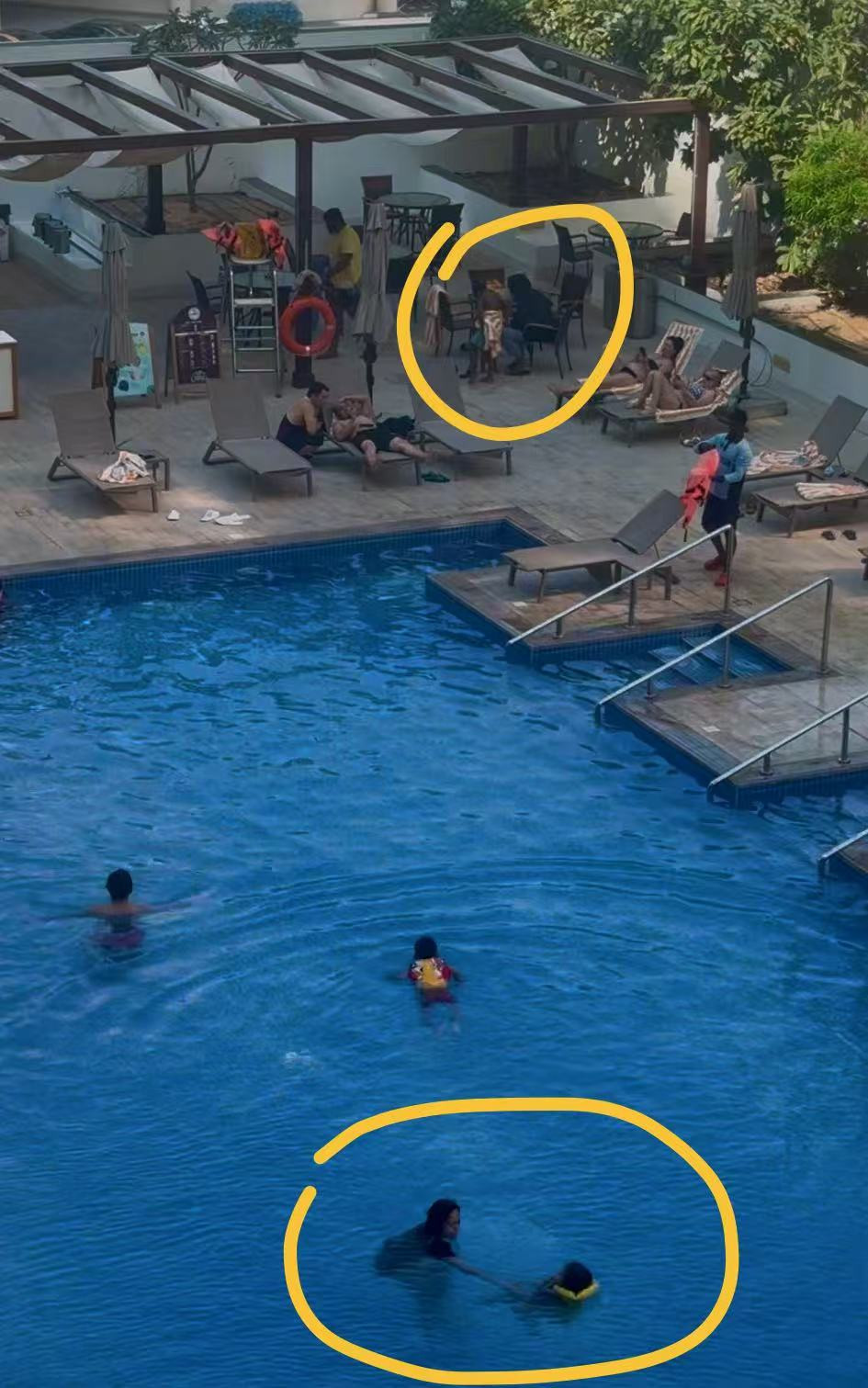 冬天的迪拜温度很适合南方人,30度左右,且阴凉的地方完全不会觉得热,只是当我穿着短袖短裤去酒店餐厅吃早餐的时候,总有点感觉浑身不自在,因为迪拜的中国人很少,酒店旅客也大多是印巴兄弟或者是中东穆斯林,打扮相对保守,吓得我干完饭赶紧回房换了条长裙再出门。房间望去窗外的泳池也不难发现,基本上是男士的乐园,偶有那么一两位泳衣穿着比较暴露的女性都是欧美白人,戏水的穆斯林孩子的母亲更是从头包到脚。