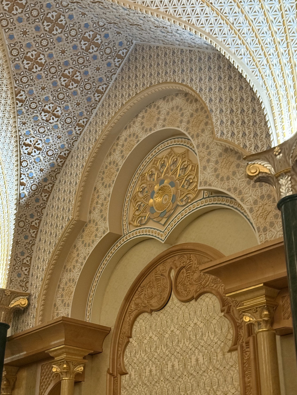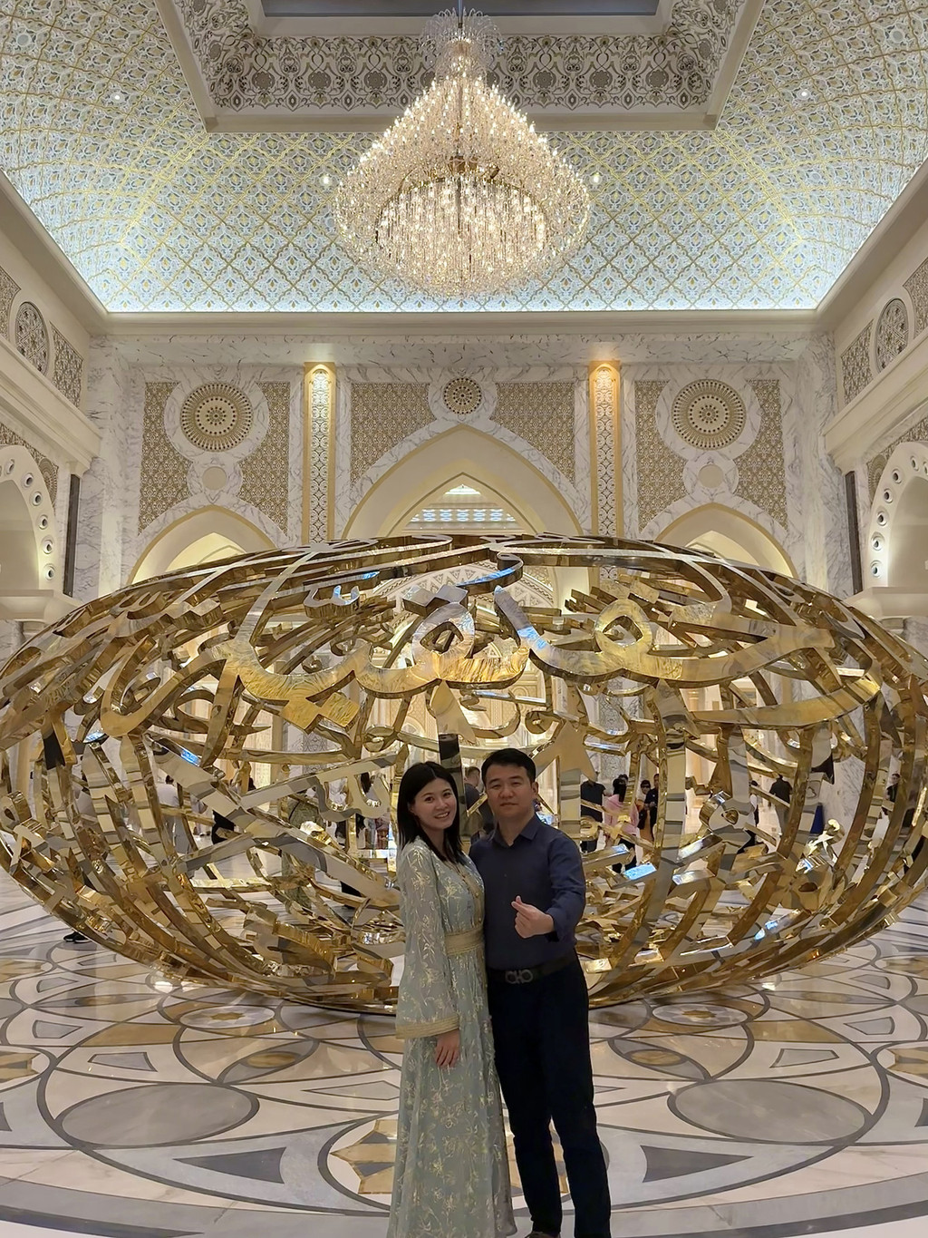 在阿布扎比的最后一站是总统府,这座全球最奢华的国家宫殿,外观跟清真寺有不少相似之处,但内部是被无数的黄金所包裹着的,实打实的金碧辉煌,第一次让我对黄金产生审美疲劳哈哈。说实话,这边的伊斯兰建筑充满了阿拉伯特色,都特别在我的审美点上,但内饰的话……有点过于土豪了,稍显千篇一律。