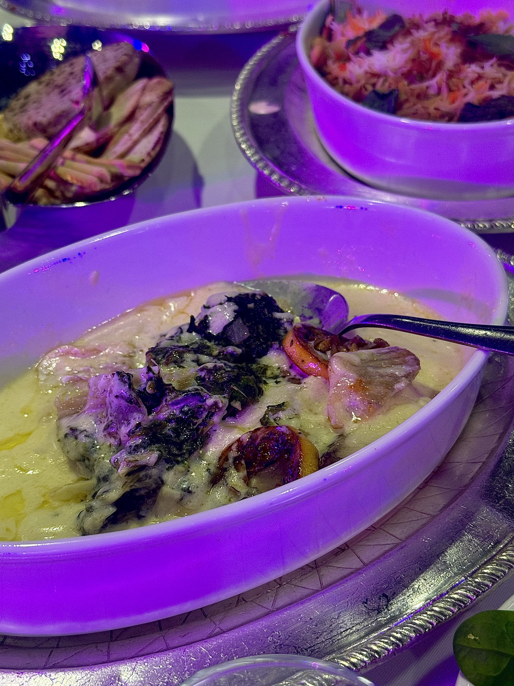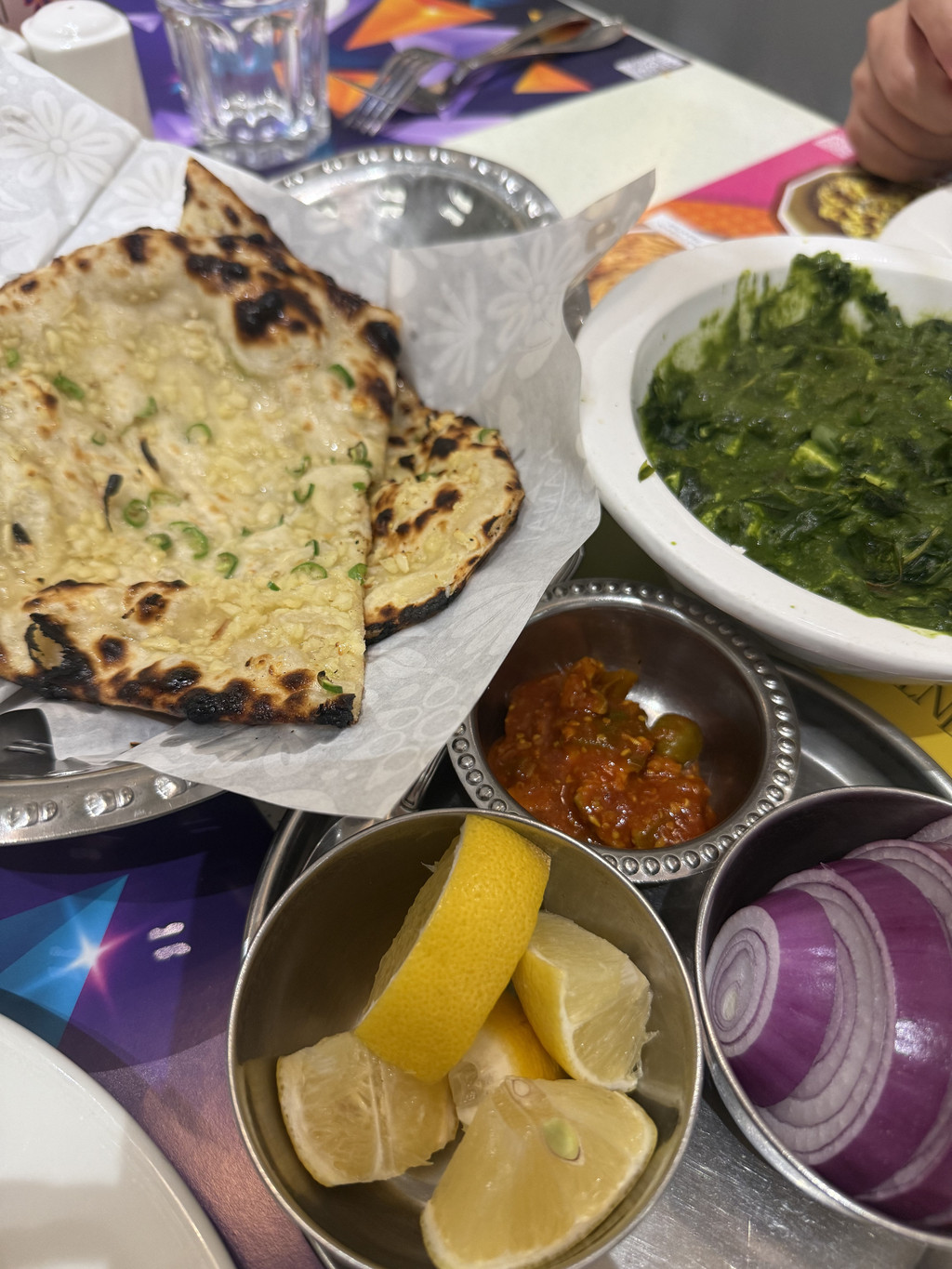 在Dubai Mall我们吃到了来自美国西部的five guys,没别的意思,主要是便宜,一个set大概是80RMB,汉堡真的是好吃到心坎上。在这里我不得不吐槽一下中东这边的食物,在旅途中一贯保持好奇心的我,但凡是见到一些没怎么见过的东西就想尝尝,结果那些一坨坨的糊状物真的不开玩笑,我很难形容他们的味道,反正就是吃进去一口就吐一口,最后发现其实还是白人饭比较好接受……唯一能认证的美味就是肉,烤肉虽然卖相焦黑,但入口都是香料味满满,一点也不柴;羊肉饭的羊肉也很软烂,量很足,米是那种长条的,没啥味道。最好吃的一顿是在酒店附近找的一家印度菜,一开始不知道是素食餐厅,后来才发现素食可以做得那么好吃!!他们做饼真的相当拿手,搭配coconut chutney,堪称一流!