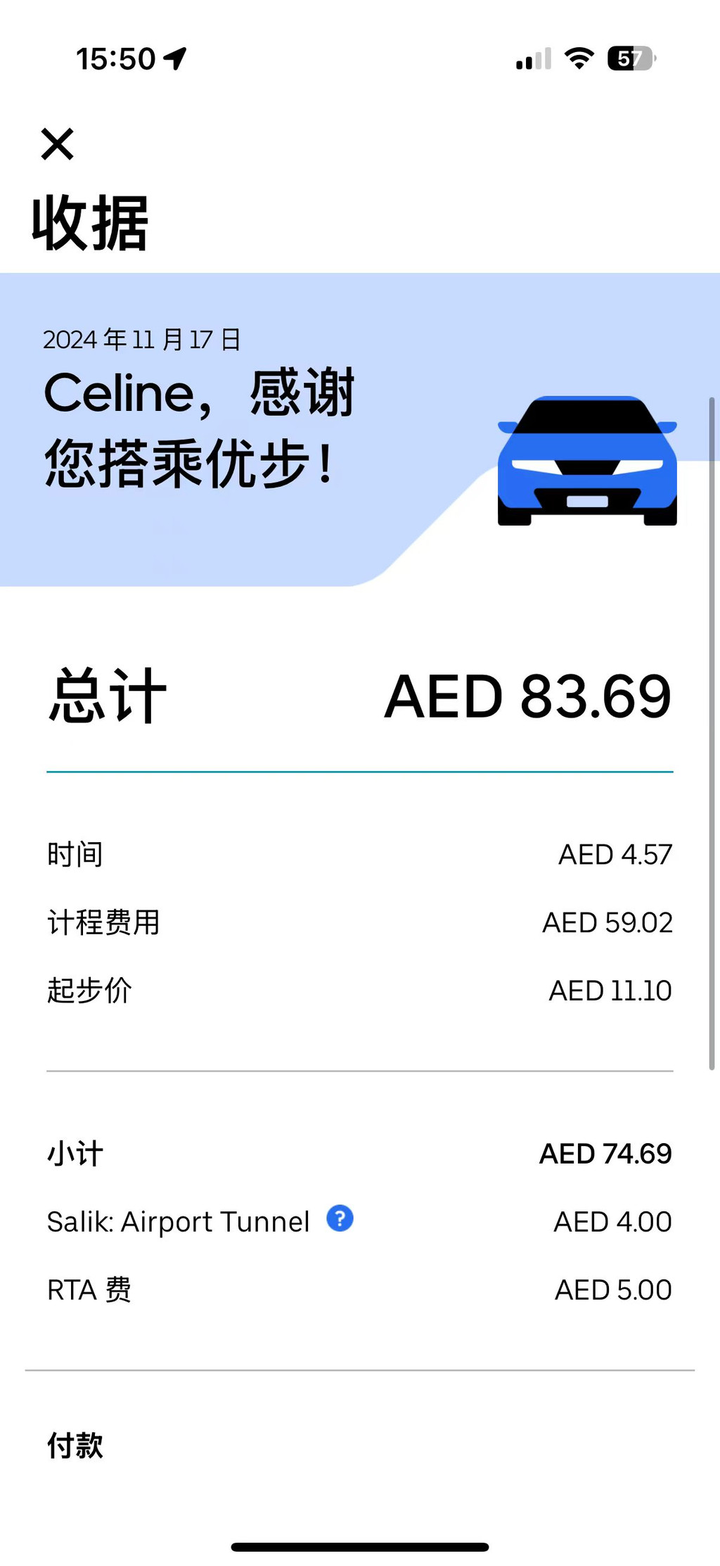 迪拜打车是真的贵,基本上每一趟都在150RMB以上,连市中心到市中心都是60RMB打底:Uber是最贵的,车型是雷克萨斯或者特斯拉;Careem或者招手拦车的话会稍微便宜个20块钱左右,但是要用现金……后来小心脏实在受不了,就选择了包车游,1300RMB/天,市区随便走。