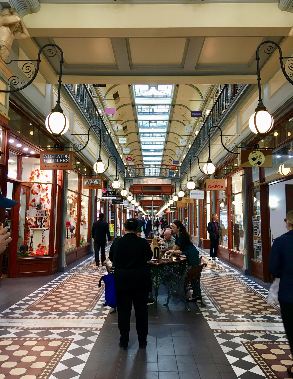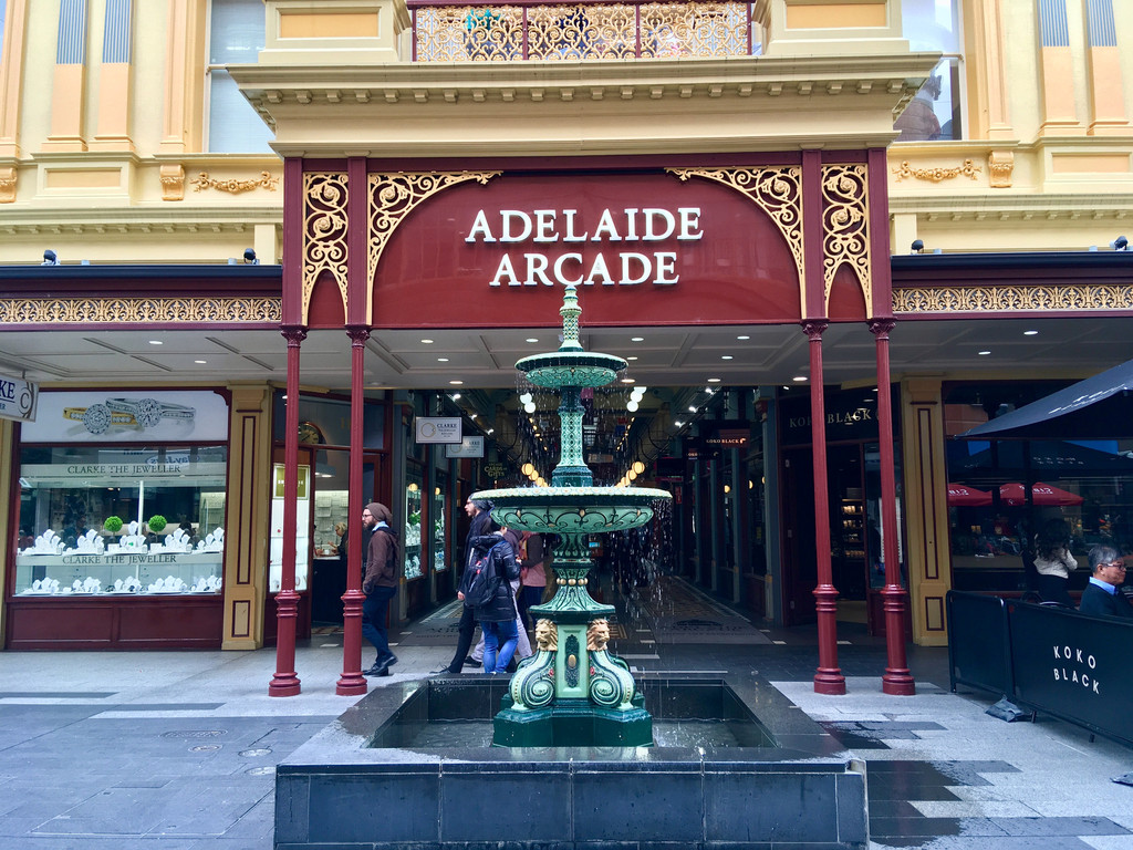 蓝道步行街上坐落着两个拱廊商场 —— 即丽晶拱廊商场 Regent Arcade 和阿德莱德拱廊商场 Adelaide Arcade。