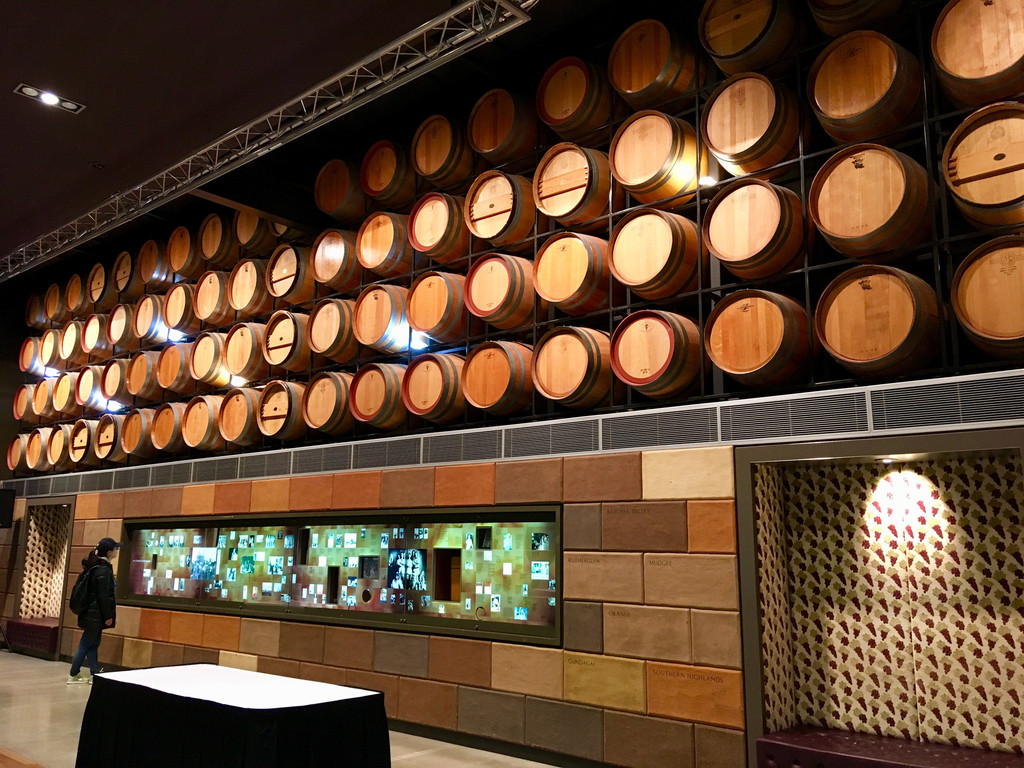 于是便进去看了看。好家伙,规模还真大。各种葡萄酒商标、酒瓶、软木塞、金属瓶盖、酒杯、醒酒器、橡木桶,应有尽有,大屏幕上播放着葡萄采摘及酿酒过程。这个葡萄酒中心的参观是免费的,当然,你还可以花钱参加听讲座、品尝葡萄酒等活动哦!