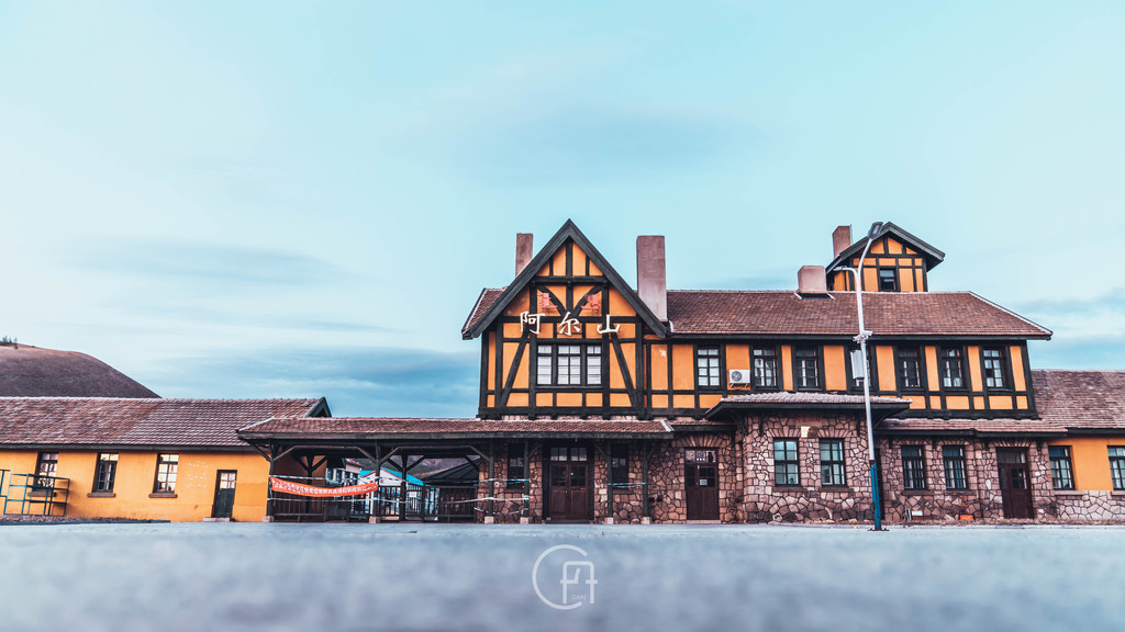 阿尔山市区虽小,名气却大,除了依托阿尔山国家森林公园外,阿尔山火车站更是一跃成为当地著名的网红打卡点之一。这个建于1937年的二层日式建筑充满了东洋风格的低檐尖顶,花岗岩堆砌的乱插石墙,赭色水泥涂盖,加上绿色条框点缀,与周边的建筑相比较显得那么的与众不同。夕阳西下阿尔山火车站沐浴在余晖之中,静谧且美好,此情此景成为了到阿尔山后收到的第一份礼物。