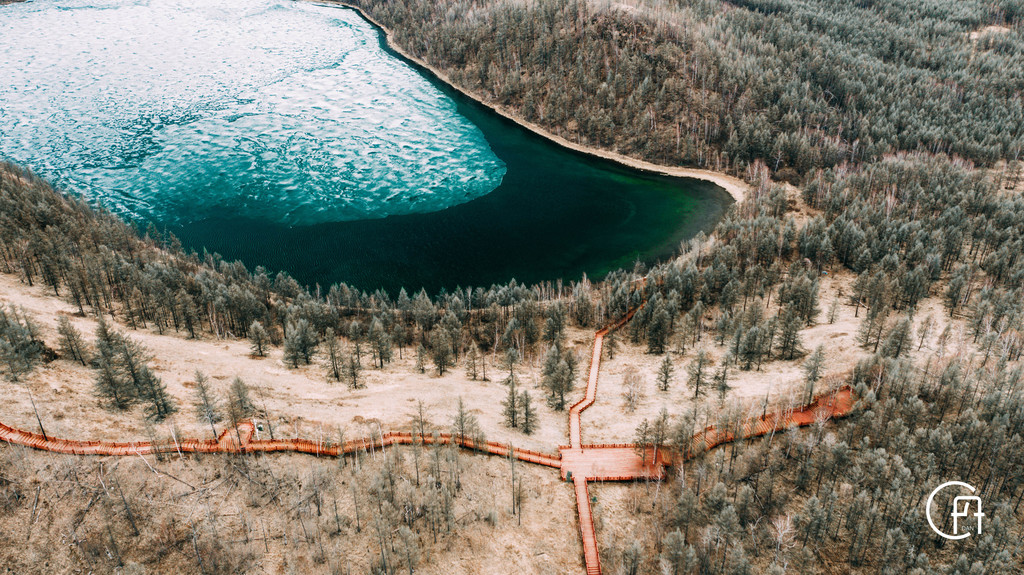 阿尔山不仅有壮阔的【地池】,高高地美丽在天边,还有优雅的地池,是阿尔山众多火山湖中唯一一个低于海平面的湖泊。碧绿的池水,像一块翡翠宝石镶嵌在大地之上,树木和动物们都迷恋她的美,围绕在她的周围,还没有消融的那一抹白雪,成为了最亮眼的点缀。
